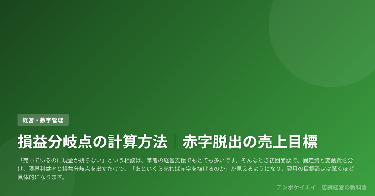 この記事は、飲食店・美容室・小売店のオーナーや店長向けに、損益分岐点売上高と目標利益達成売上高を自分で計算できる状態を目指して書いています。